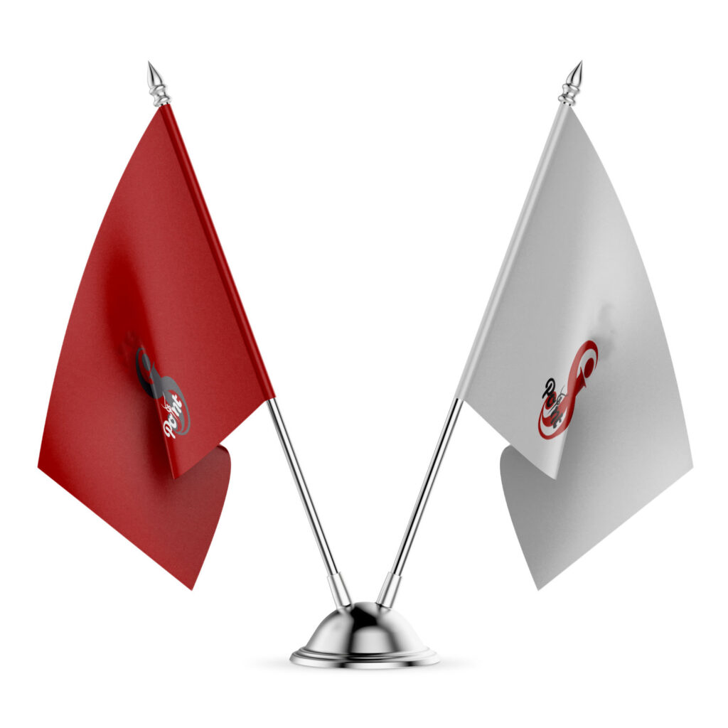 Custom printed table flags for corporate offices, exhibitions, conferences, and official branding displays.